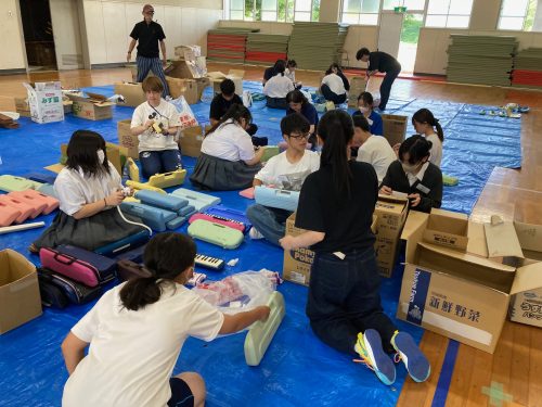 大井楽器倉庫にて大井高校から4名、大井分教室から2名、湘南工科大付属から4名函嶺白百合学園から4名の総勢14名のSPLASHメンバーにより鍵盤ハーモニカ約300個、リコーダー約100本のクリーニングを実施しました。